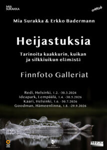 Mia Surakan ja Erkko Badermannin valokuvanäyttely Heijastuksia – Tarinoita kuikan, kaakkurin ja silkkiuikun elämästä kiertää Finnfoto Gallerioissa helmikuusta 2026 alkaen.